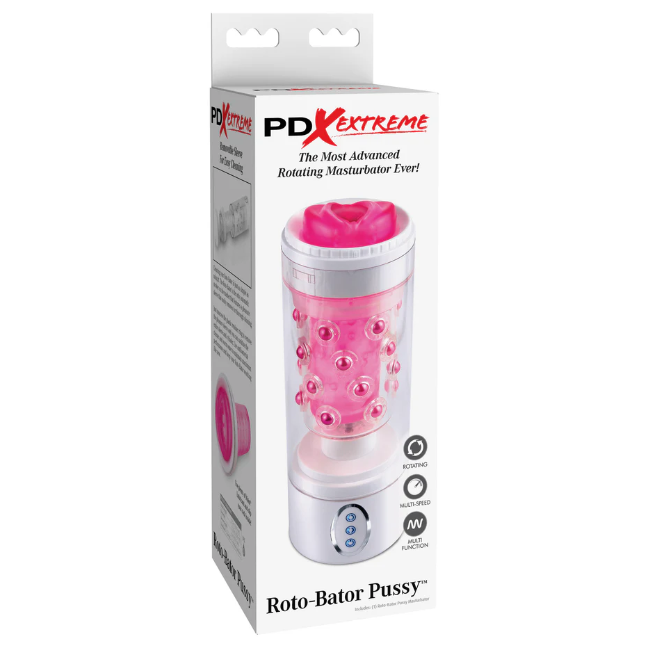 The Roto-Bator Pussy is the ultimate powered masturbator that does all of the work for you! No more pumping, stroking, or squeezing just push a button and enjoy mind-blowing stimulation developed to make you cum harder than ever before!