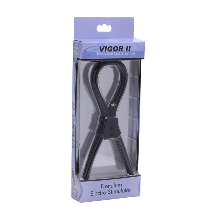 Electrify yourself or your partner with the intense stimulation of the Vigor II. These penis-oriented estim accessories are the perfect way to create all new sensations in the penis. Adjust one of the silicone ties around your cock and balls to your desired tightness, followed by the second one around the frenulum. Plug in a single set of leads to your loop ties to experience pulsing pleasure all down your shaft, from the sensitive area beneath the head of your cock to your constricted cock and balls. Experience various settings from your Zeus Power Box as the current courses from the red lead down to the black. One size fits most with these adjustable ties, perfect for use as a regular cock ring as well!